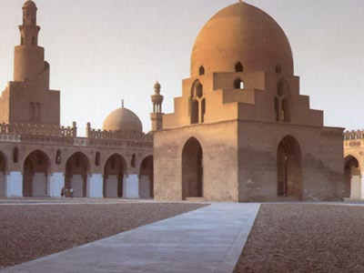 Она была перестроена из большой христианской базилики, в свою очередь воздвигнутой на месте античного храма Юпитера. Дамаская мечеть с ее высоким колонным залом, где просторно расставленные колонны с коринфскими капителями принадлежат более раннему (византийскому и, возможно, даже римскому) времени — пример перевоплощения христианской базилики в мусульманское культовое здание. С большей последовательностью принципы арабской архитектуры решены в мечети Ибн Тулуна в Каире (876—879).