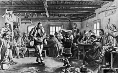 Мырквичка. С теплотой и правдивостью писал сцены шумных красочных базаров, народных обрядов Иван Мырквичка (1856—1938). В картине «Рученица» (1894, София, Национальная художественная галерея) он изобразил собравшихся в корчме крестьян, из которых двое увлеченно танцуют народный танец — рученицу. Верно схвачены характеры, типы людей; пристальное внимание к их внутреннему миру, точное и любовное воспроизведение окружающей обстановки сближают это произведение с работами русских художников-передвижников.
