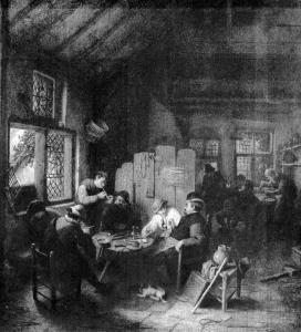 Остаде. Чертами добродушного юмора, иронии овеяны образы крестьян в картинах Адриана ван Остаде (1610—1685). Если ранние его картины с изображением сцен в трактирах носили грубоватый характер, то более зрелые произведения проникнуты настроениями умиротворенности, лиризма, тонкого юмора («В деревенском кабачке», 1660, Дрезден, Картинная галерея).