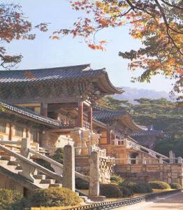 С распространением буддизма, ставшего официальной религией государства Силла, началось бурное строительство храмов и пагод. В таких ансамблях 7—8 вв., как Бондокса, Камынса, Пульгукса и др., близких по типу дворцовому зодчеству, логическая целесообразность конструктивных приемов сочетается с красотой плотницкой работы и мастерством орнаментации сложных подкровельных украшений. Живописно расположенный на склоне горы храмовый ансамбль Пульгукса включал в себя, помимо главного павильона храма Тэунджон, ряд других сооружений, в том числе приподнятые высоким каменным цоколем ворота с парадными лестницами, а также небольшие каменные пагоды строгих и одновременно нарядных форм — Таботхап и Сокхатхап.