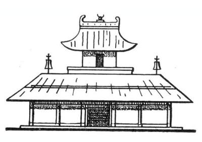 Одновременно с монументальными культовыми сооружениями, строившимися из сырцового кирпича и камня, в 16 в. развивалась и совершенно самостоятельная область зодчества, связанная с традициями кочевого быта. Войлочная круглая торта — «гэр», легко разбирающаяся, с раздвижными стенными решетками — «хан», богато украшенная вышивками и аппликациями, не являющаяся сама зданием в общепринятом смысле слова, в то же время породила разнообразные и сложные формы строений, приспособленных к условиям быта оседлого населения. В основу многих культовых монгольских построек легла композиция подобной юрты с лаконичностью, приземистостью, ясностью и устойчивостью ее форм.