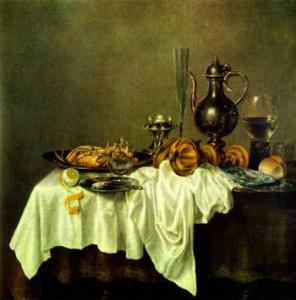 Питер Клас (ок. 1597—1661) и Биллем Хеда (1594—1680/82) писали многочисленные варианты «завтраков», изображая на столе окорока, румяные булочки, ежевичные пироги, хрупкие стеклянные бокалы, наполовину наполненные вином, с удивительным мастерством передавая цвет, объем, фактуру каждого предмета.
