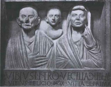 Скульпторы эпохи республики создавали не только портретные бюсты и статуи отдельных римлян, но и групповые поясные портреты родственников, объединенных единой композицией стелы, групповые портреты в рост. Их возникновение объясняется культом строгого семейного уклада древнеримских знатных родов. Пример такого группового портрета — изображение в надгробной стеле римлянина Вибия и членов его семьи (вторая половина 1 в. до н. э., Рим, Ватикан). Образ человека в портрете эпохи республики сохраняет внутреннюю замкнутость. Взгляд изображаемого обычно остается безразличным к окружающей среде (человек находит опору в себе самом).