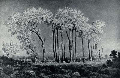 Барбизонцы Иной характер носила живопись художников-барбизонцев, изображавших сельскую природу Франции и утверждавших национальный реалистический пейзаж. Обратившись непосредственно к обыденным мотивам природы своей родины, эти художники начали писать все то, что видели перед собой,— поля и леса, речки и деревни. После многочисленных поездок по стране они избрали местом постоянного пребывания небольшую деревушку Барбизон, в лесу Фонтенбло, близ Парижа. Там поселились Руссо и Милле, туда приезжали работать другие художники. В числе барбизонцев были Дюпре, Добиньи, Тройон, Диаз. Каждый из них имел свое творческое лицо, излюбленные мотивы, свою манеру письма. Но всех их объединяли настоящая искренность и энтузиазм, любовь к родной природе, которую они стремились запечатлеть во всем ее многообразии.