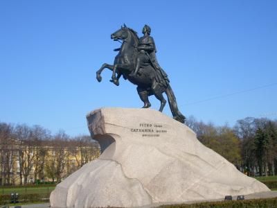 Общественный подъем, который переживала Россия в это время, критика абсолютизма великими русскими просветителями, их мечты о коренном изменении общественного уклада и жизни русского народа вдохновили Фальконе. Образ Петра трактуется им в самом широком плане как воплощение смелого дерзания человеческой мысли и действия, как волевой порыв в светлое будущее. Петр Великий представлен верхом на вздыбленном коне, внезапно остановившимся у края обрыва крутой скалы. В направляющем жесте его протянутой руки — выражение устремленности вперед и всепокоряющей воли; гордо вскинута голова, лицо озарено светом высокой мысли. Монументальная сила сочетается здесь с естественностью и свободой, стремительное движение — с позой величественности и покоя. Силуэт могучего всадника, покоряющего стихию, господствует над площадью и вместе с тем включается в панораму города. Пластическое богатство образа раскрывается по мере обозрения с различных точек зрения.