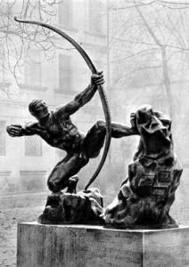 Бурдель. Лучшие произведения Эмиля Антуана Бурделя (1861—1929), художника напряженных чувств и высоких помыслов, проникнуты духом героической борьбы, созвучной прогрессивным устремлениям эпохи. Сын республиканца, художник демократических взглядов и широкого понимания задач искусства, Бурдель возрождает пришедшую в конце 19 в. в упадок монументальную скульптуру. В центре его внимания могучие характеры, люди действенные, активные, целеустремленные. Основная тема искусства Бурделя — героическое действие, понимаемое в самом широком плане, не только как воинский героический подвиг, но и как творческое напряжение, как духовная деятельность. Обладая редким для начала 20 в. пониманием связи архитектуры и скульптуры, Бурдель тяготел к конструктивному построению монументальных форм, к динамике крупных пластических масс, подчеркнутой резкости шероховатой обработки поверхности, как бы исполненной внутреннего движения. В поисках лаконичного пластического языка он обращался к искусству Древнего Востока, античной архаике, французской готике, мечтал о создании великих памятников и монументальных ансамблей.