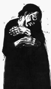 Кольвиц. Социальная тематика получила дальнейшее углубление в суровом демократическом реализме Кете Кольвиц (1867—1945). Ее творчество посвящено рабочему классу и крестьянству Германии, овеяно пафосом революции, борьбы, исполнено трагического гуманизма и страстного протеста против социальной несправедливости. В графических циклах Кольвиц с горячим сочувствием отражены жизнь и нужда пролетариата. Измученные суровые лица рабочих и крестьян, их сгорбленные костлявые фигуры, натруженные руки несут следы непосильного труда, но в этих образах передано огромное мужество. Сдержанные во внешних проявлениях отчаяния и скорби, они неистовы и отважны в борьбе. Центральный социально заостренный образ офортов Кольвиц — страдающая мать, борющаяся с голодом и нищетой во имя своих детей. Безмолвная скорбь о смерти ребенка с проникновенной глубиной запечатлена в офорте «Нужда» (серия «Восстание ткачей», 1897 —1898). Сгущающаяся до мрака воздушная среда рождает атмосферу трагической безысходности в жалких лачугах ткачей. Пробивающийся во мгле свет резко выделяет измученное лицо матери, подавленной горем, но не сломленной. В личном горе семьи художник находит социально-типические явления. Страшная нужда в рабочих кварталах — причина не только смерти, но и восстаний. Листы Кольвиц — суровое социальное обличение. Пафос действия и протеста присущ большим драматическим циклам, к которым обращается Кольвиц. Грозен цикл «Крестьянская война» (1903— 1908), с глубоким историческим чутьем раскрывший трагедию крестьянской войны в Гер¬мании 1625 г., историю борьбы угнетенных веками поколений («Прорыв», или «Штурм», 1903) — это кульминация, бунт, взрыв долго сдерживаемых страданий. Гневная толпа восставших крестьян с оружием в руках, с исступленной стремительностью несется на врага. Поражает силой душевного порыва образ женщины, призывающей к борьбе. Художник чувствует характер грозной эпохи, верно передает неуловимую, неповторимую в своем своеобразии атмосферу истории. Язык мужественного искусства Кольвиц немногословен, суров, прост и ясен, типические образы рабочих и крестьян наделены конкретными индивидуальными и социальными чертами, композиции монументальны, очищены от повседневно-бытовой среды, психологические и эмоциональные характеристики заострены. Манера экспрессивна, живописна и основывается на сочетании разнообразных по фактуре то энергичных, то мягких штрихов и сочных, легких, прозрачных пятен различной насыщенности. Яркие вспышки света резко переходят в густые черные тени.