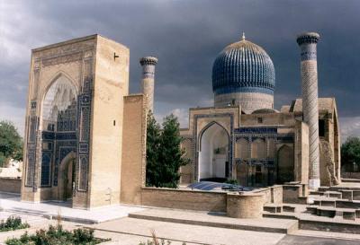 Торжественно монументальна усыпальница Тимуридов — Гур-Эмир в Самарканде (нач. 15 в.).