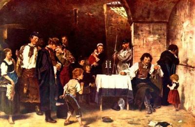 Мадарас. Пафосом революционной борьбы, романтической взволнованностью овеяны исторические картины Виктора Мадараса (1830— 1917) «Оплакивание Ласло Хуньяди» (1859) и «Зриньи и Франгепан» (1864, обе — Будапешт, Венгерская национальная галерея). Художник выступает против монархической тирании Габсбургов, с искренним сочувствием изображая ее жертвы. Несмотря на то что в картинах Мадараса есть элементы театральной эффектности, он подходит к постижению исторической правды и этим пролагает пути реализму.
