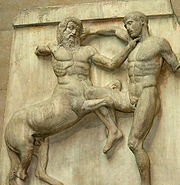 Все девяносто две метопы храма были украшены мраморными горельефами, среди которых выделяются изображения битвы лапифов и кентавров (Лондон, Британский музей).