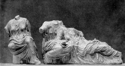 Непринужденное благородство движений этих фигур подчеркнуто красотой ниспадающих складок, за которыми ощущается богатейшая пластика живого человеческого тела. Гармония и величественность фронтонных скульптур Парфенона достигнуты отбором тонко прочувствованных естественных движений, свободной целесообразностью и единством композиций, прославляющих красоту и совершенство человека.