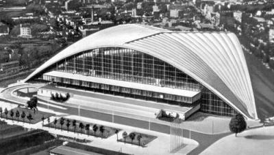 Интересно здание Национального центра промышленности и техники в Париже (1958), перекрытое крупнейшей сводчатой оболочкой.