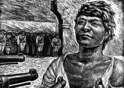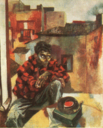 Гуттузо.  Художник-мыслитель, политический деятель, участник партизанского движения Сопротивления, крупнейший мастер современности, Ренато Гуттузо (р. 1912) прошел суровую школу борьбы в годы фашизма и оккупации Италии. Уже в 1930-х гг. он выступил против профашистского направления в искусстве, стремился быть в гуще жизни, глубоко почувствовать внутреннюю напряженность современного бытия. Свою борьбу за социально активное революционное искусство он связывает с поисками конкретного, исполненного страстной энергии изобразительного языка, способного в монументальных, исполненных энергии формах воплотить большую социальную тему. Он создает произведения тематически активные, раскрывающие многогранный, богатый внутренними контрастами образ эпохи и современника — человека труда, полного достоинства и силы. История родной страны с ее острыми социальными конфликтами, бесстрашные крестьяне, стихийно захватывающие помещичьи земли, патриоты, умирающие во имя родины, революционеры — деятели подпольных типографий, зверства нацистских войск (графическая серия «С нами бог», цветная тушь, акварель, 1943—1944 гг., золотая медаль Мира, 1950), батраки Калабрии, люди в повседневной городской или сельской обстановке — вот что его привлекает. В крепких фигурах, в больших рабочих руках, в энергичных и гибких жестах и движениях людей он открывает огромную внутреннюю силу. Сражаясь, погибая и побеждая, его герои спаяны едиными устремлениями и помыслами, верой в победу. Образы современности вырастают у Гуттузо до больших философских обобщений — в окружающей жизни он видит главное, значительное, захватывает зрителя напряженной пластикой языка, лаконизмом и эмоциональной кульминацией («Девушка, поющая «Интернационал», 1953, Рим, собрание С. Амидеи).