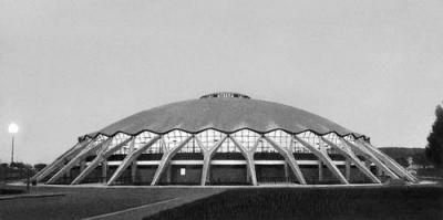 Особое значение в перекрытии огромных внутренних пространств приобретают криволинейные формы железобетонных оболочек в виде параболы, эллипса, гиперболы. Они дали возможность перекрывать без опор большие пространства. Висячие железобетонные оболочки нашли применение в спортивных и зрелищных сооружениях (например, Спортивная арена в Релей, США). Поиски наиболее рациональных пространственных конструкций привели американского инженера Р. Б. Фуллера к созданию так называемого геодезического купола сетчатой формы (Центральный павильон выставки в Сокольниках, павильон США на ЭКСПО-67). Другим примером плодотворных инженерно-технических достижений в современном строительстве являются сооружения П. Нерви, в которых он стремится выявить конструктивные возможности железобетона и армированного цемента, применяя тонкие сводчатые оболочки двоякой кривизны, складчатые, ребристые перекрытия-скорлупы — Малый Дворец спорта в Риме (1956—1957, ил. 285), ангары и склады, заводские корпуса в Италии.