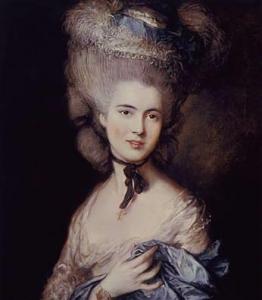 В ряде случаев Гейнсборо исполнял заказы тех же лиц, что и Рейнольдс. Эти портреты подчеркивают разницу творческого метода и своеобразие художественной манеры каждого из них. Если Рейнольдс изображал Сару Сиддонс в виде музы трагедии, пышно одетую и восседающую на троне, то Гейнсборо представил знаменитую актрису в жизни, в элегантном костюме для прогулки, спокойно сидящую в кресле — «Портрет актрисы Сары Сиддонс» (1784—1785, Ло¬дон, Национальная галерея). Художник подчеркивает интеллект молодой женщины, ее обаяние, изящество, вкус, не прибегая к аллегориям. Высокая черная шляпа с перьями вырисовывается на темно-красном фоне, оттеняя белизну и нежность кожи ее тонкого лица. Голубые тона платья приобретают особую звучность в соседстве с контрастными золотистыми оттенками шарфа и рыжим мехом муфты.